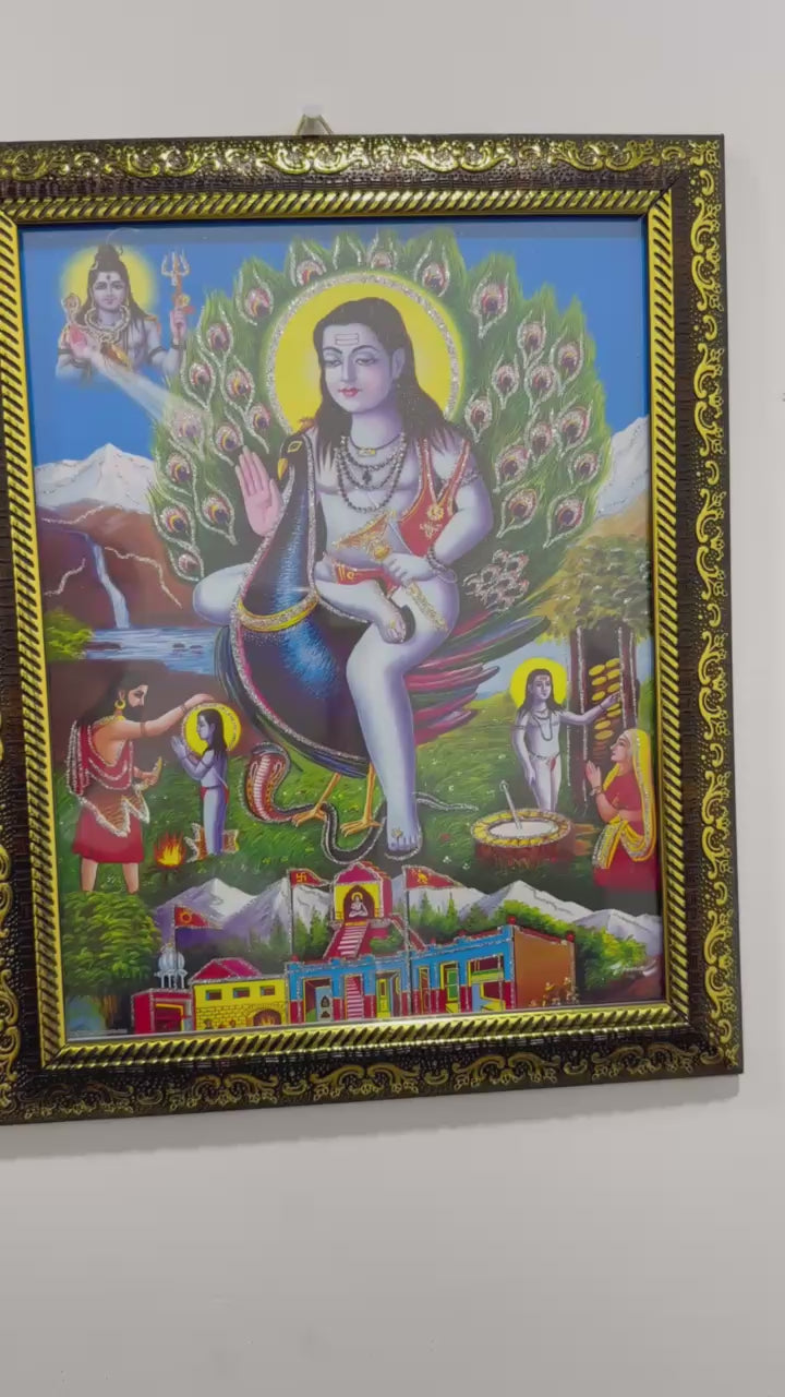 Celebrate Maha Shivratri with this sacred Lord Kartikeya Picture Frame (11x13 inches), symbolizing divine protection, wisdom, and spiritual growth. As the revered son of Lord Shiva and Goddess Parvati, Lord Kartikeya embodies strength and victory over obstacles. This beautifully crafted frame is perfect for home temples, meditation spaces, and gifting on this auspicious occasion.