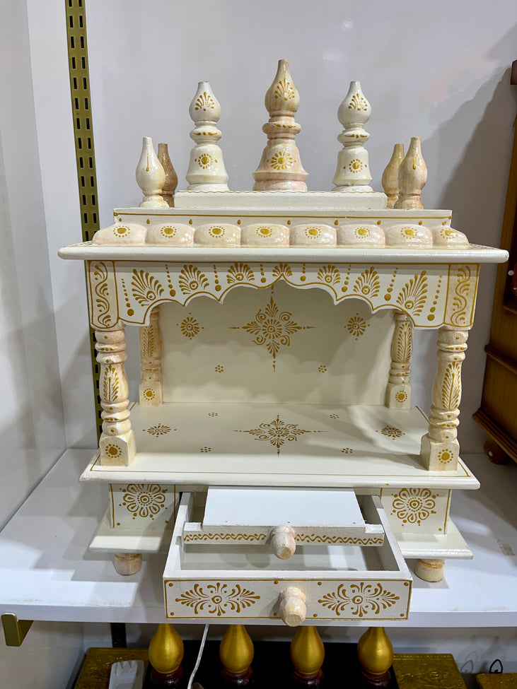 • Storage Drawer: A single drawer provides ample storage for puja essentials, keeping everything organized and accessible.